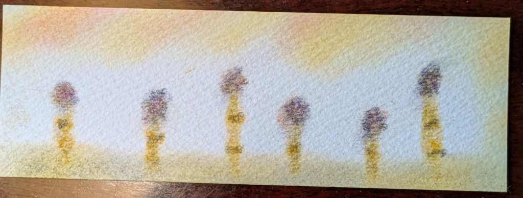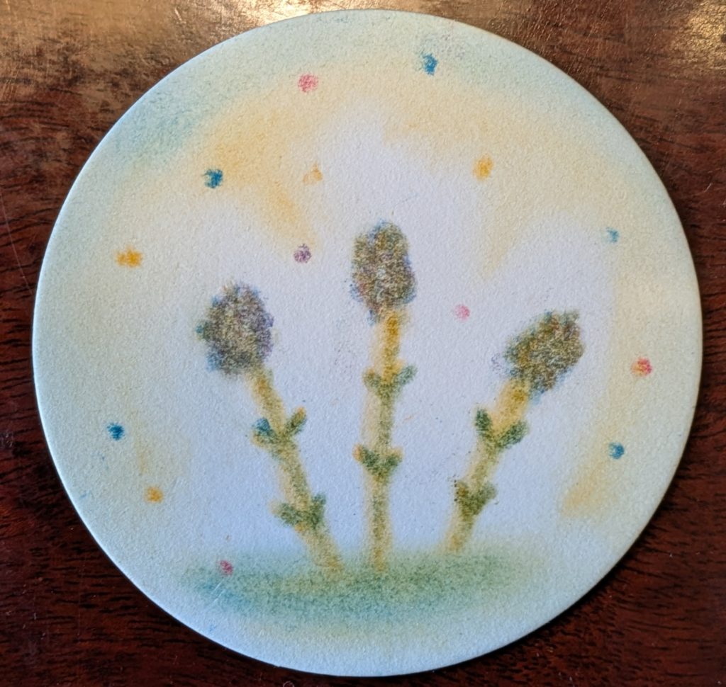 パステルを指先につけ、つくしの穂先を描いていく。この3色パステルアートでは珍しい手法なので、描くのがとても楽しい作品になります。春のルンルンさが表れていると思いませんか?