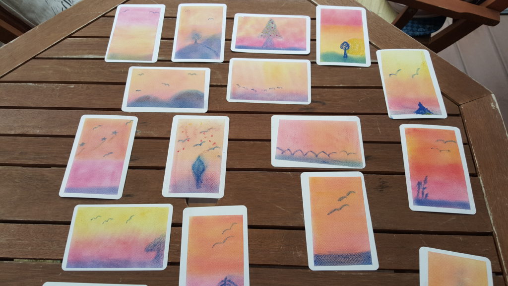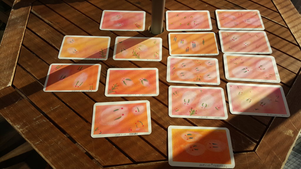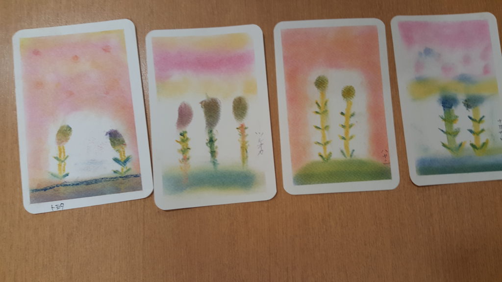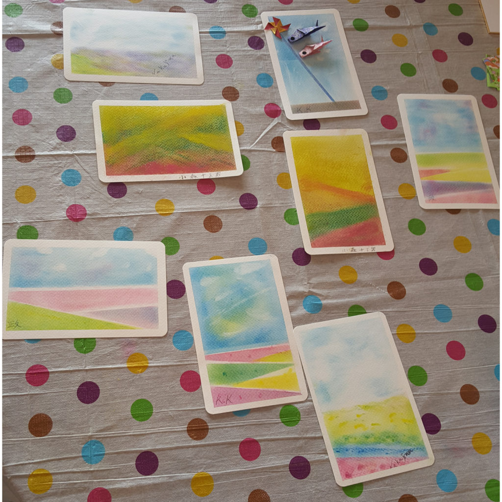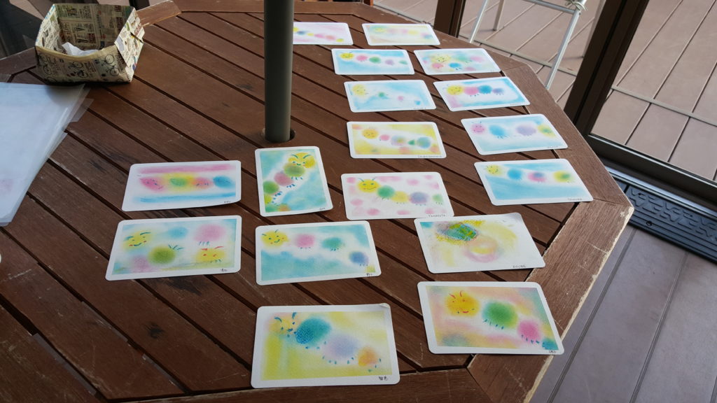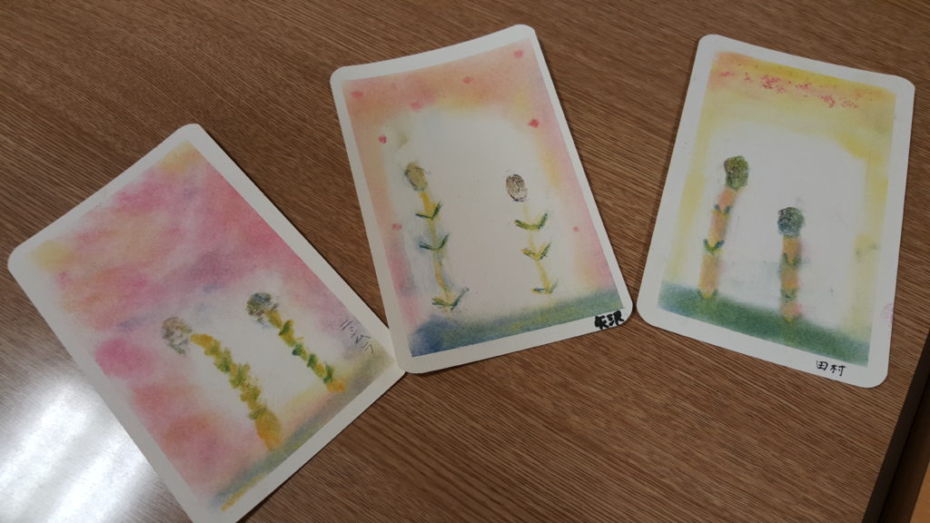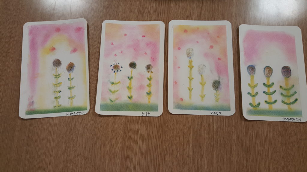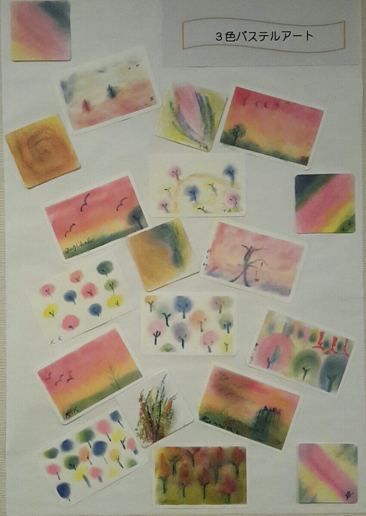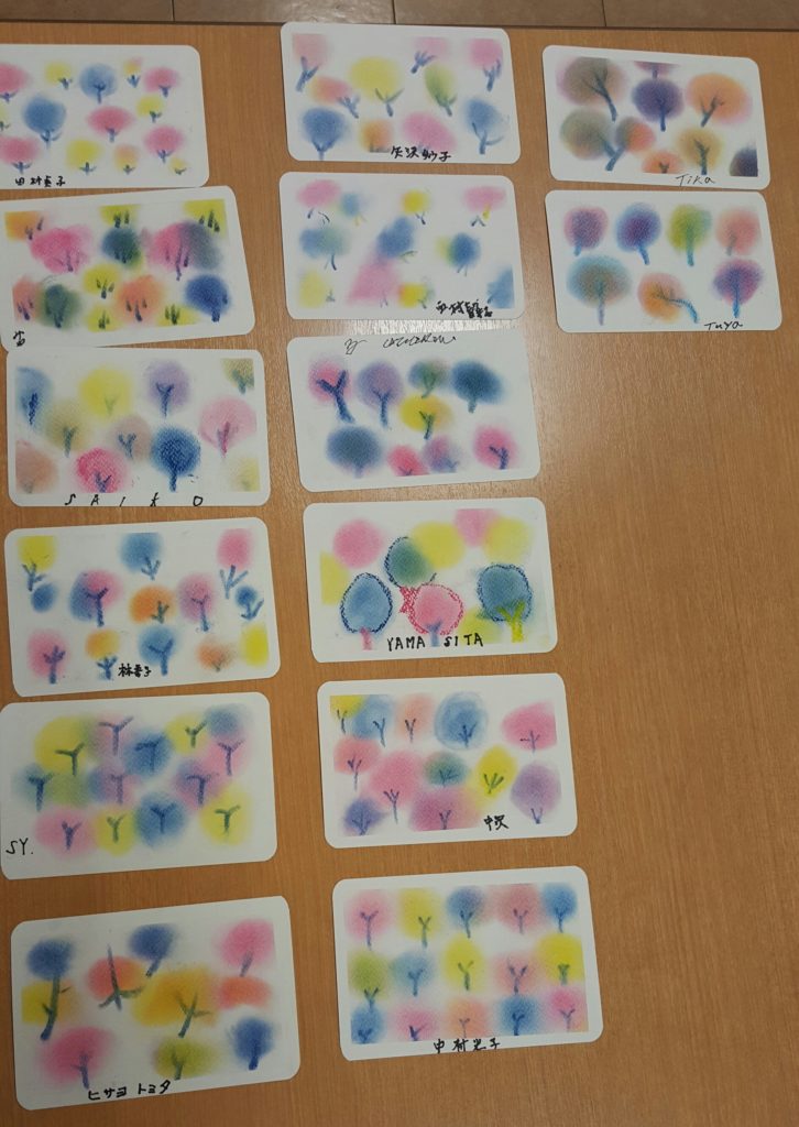 開始時には「絵なんて描けない!描きたくない!」「何をするのかさっぱり分からない」と野次に近い声が飛び交い、心が折れそうでした。それでもレシピを配り今日は夕焼け空を描きます。と伝えると雰囲気も和み、進めていくうちに笑い声も聞こえてきました。