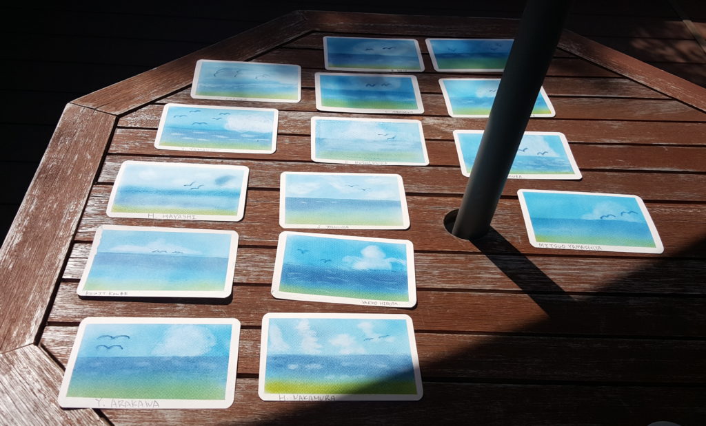 描きながらの会話は、ヒントを得たり アドバイスになったり アイデアを出し合ったり と美味しいスパイスになっているように思います。お手伝いいただいているケアスタッフの方にも「回を追うごとに皆さんグレードアップされてますよね♡」と。多人数ならではの相乗効果ですね。