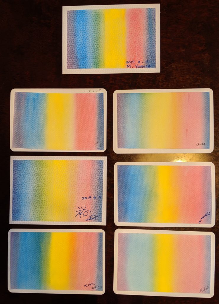 「描いてみたら簡単。」「とても楽しかった。」「もっと描きたい。」とのお声をいただきました。3色パステルアートは上手に描くことよりも、色の混ざり具合を楽しんでもらうことや苦手だった絵を描くことができたという喜びを感じてもらえることに重きをおいています。鑑賞会も行え、心地よい団欒の場になったように思います。理想の「mattari」空間を作れるように少しずつ成長していきたいです。