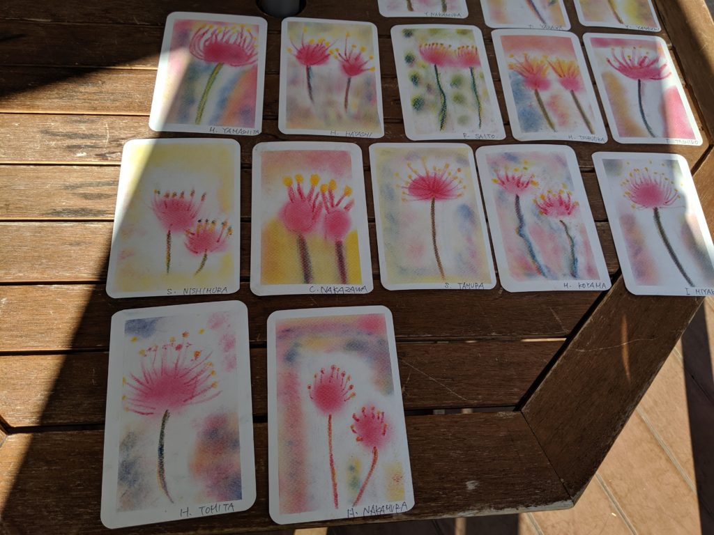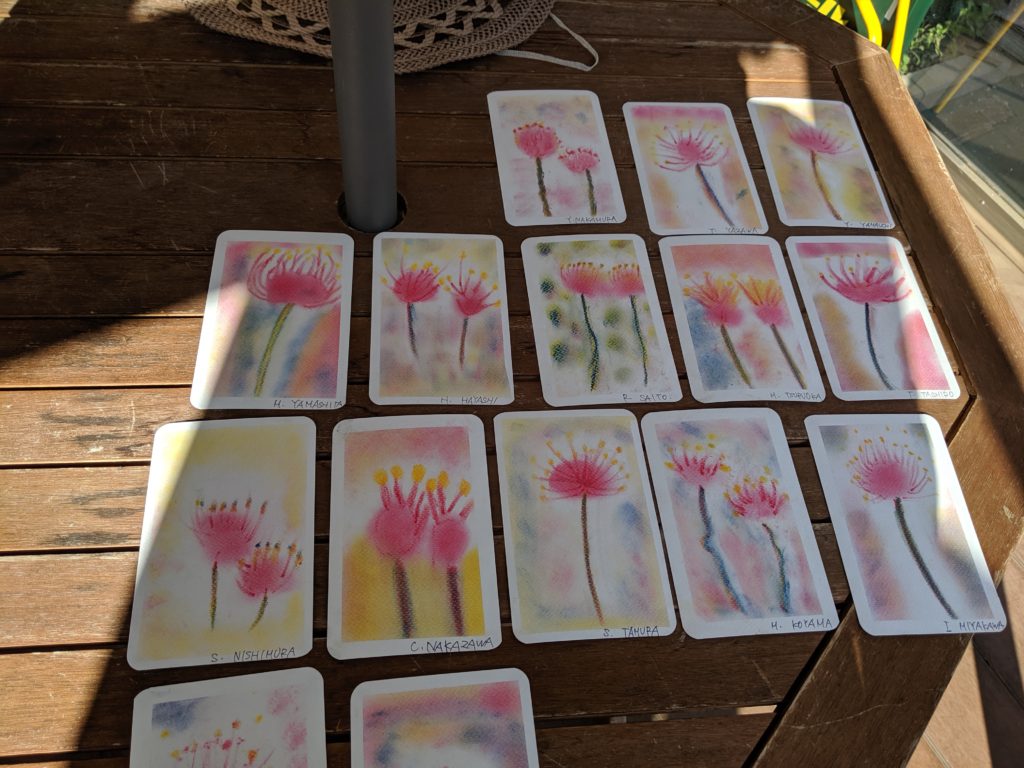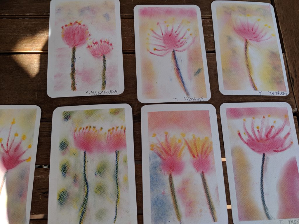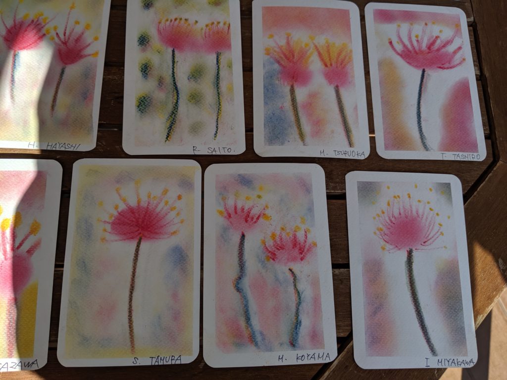 秋のおとずれ 20190919 「彼岸花」 デイサービスセンターにて 心地よい風を感じるようになりましたね。今日は「曼珠沙華」とも呼ばれている「彼岸花」を描いていただきました。皆さんはどちらの呼び名がしっくりきますか?