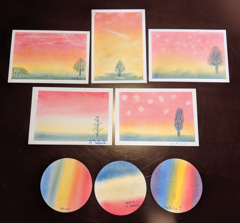 好空間 20191021「夕焼け空」「落ち葉」 一丁目の食堂にて こちらがとても居心地の良い空間なのか参加者の方々の雰囲気なのか、”初めまして”の方が入られても和やかに過ごせてしまう。全てを包み込んでくれるようなとても素敵な空間です♪