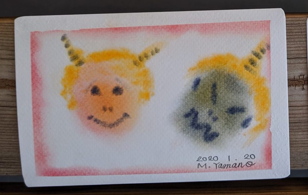 想造 20200120「雪うさぎ」「鬼~節分~」「七色」「トマトとピーマン」 一丁目の食堂にて 思いを馳せながら、またはインスピレーションや何かに導かれるように。思い思いの作品作りを楽しんでいただいています♪ レシピはありますが、同じものを描く必要はありません。 今日の気分や描きながらも変えていっていいのです。 思いのままに。