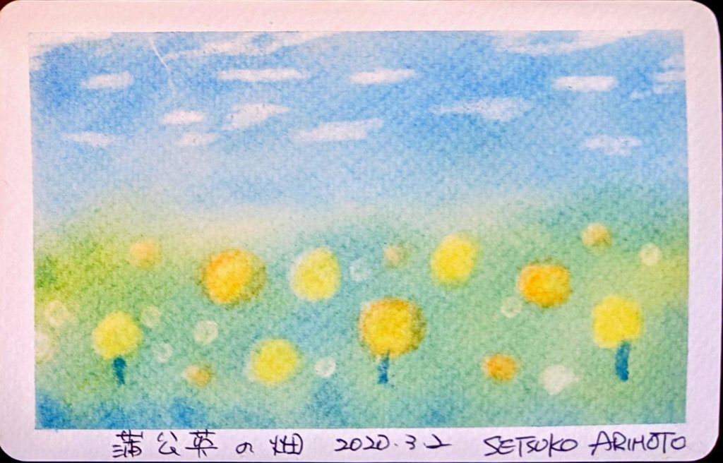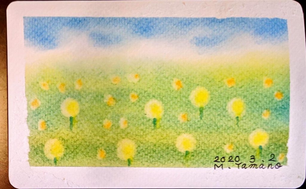 季節を取り込む 20200302「たんぽぽ」「双葉」 一丁目の食堂にて 世の喧騒とは裏腹に季節はめぐり穏やかな春に近づいています。 心から新型コロナウイルス感染症の終息を願いつつ描いていただきました。 日常の空間の中に季節を感じていただけたら幸いです。