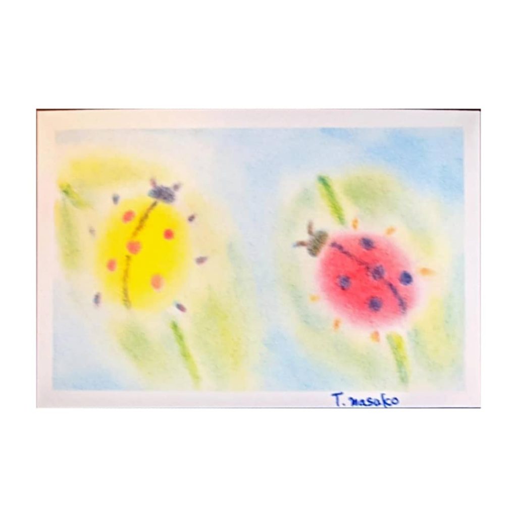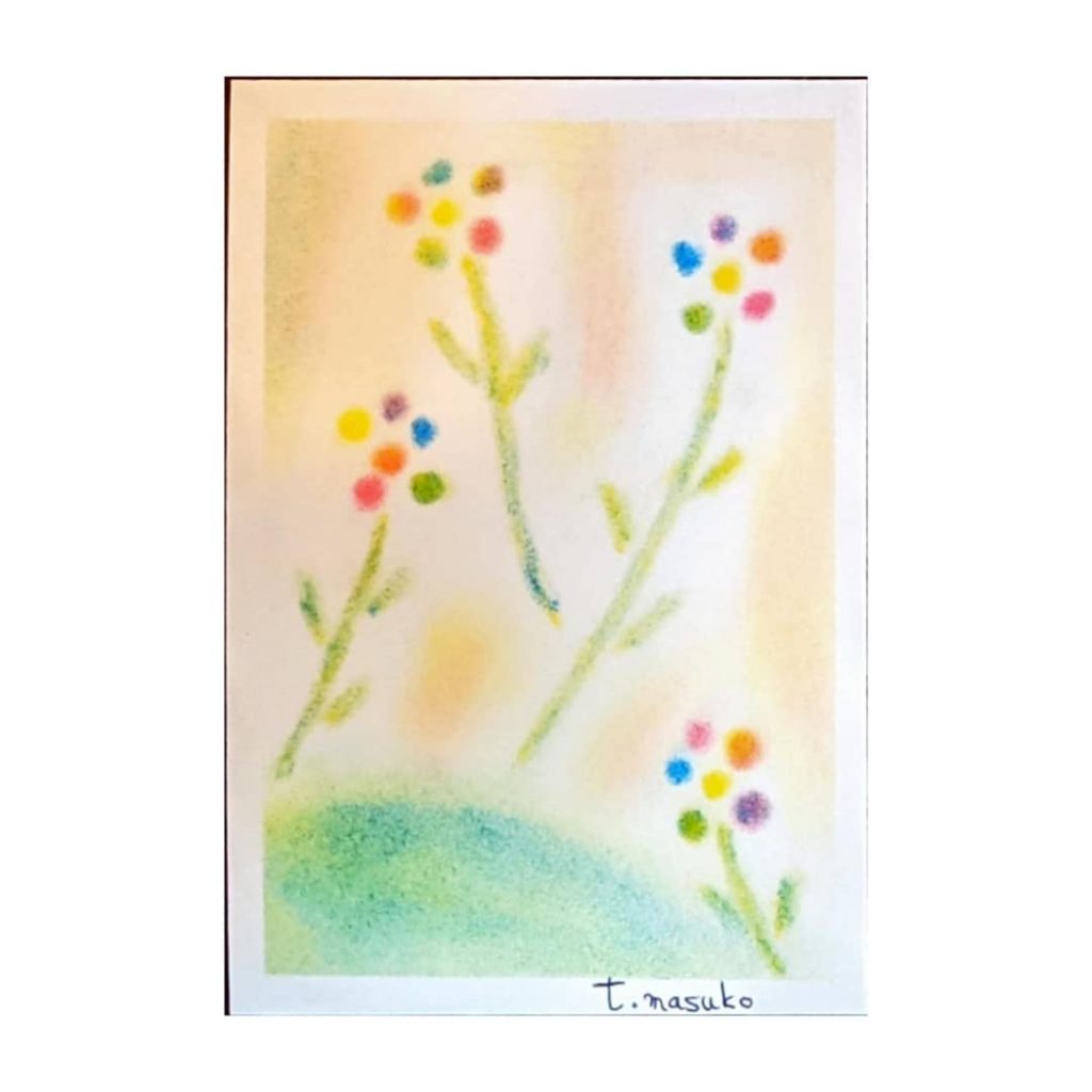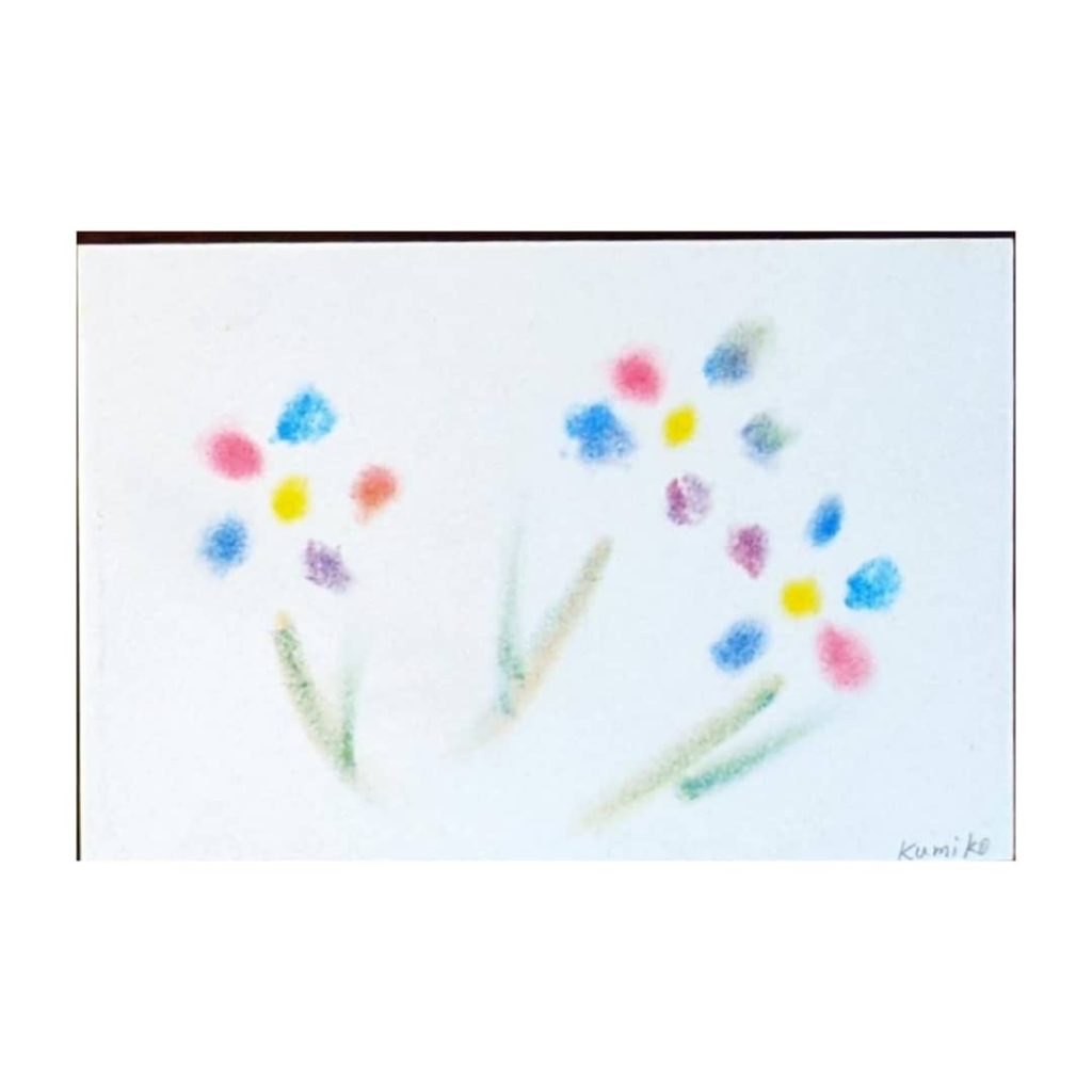 再開と再会が叶いました。季節はもう春。深く暗いところから抜け出し、漸く陽の光にあてられたパステルカラーの映える季節。参加者の方々も久しぶりの感覚とともに楽しみながら描かれていました。当たり前にできていたことができなくなった今、一期一会の大切さも一日の大切さも改めて知らされることになりました。全てのことに感謝を込めて。本日のお題は「ぐるぐる色のお花」「天道虫」でした。