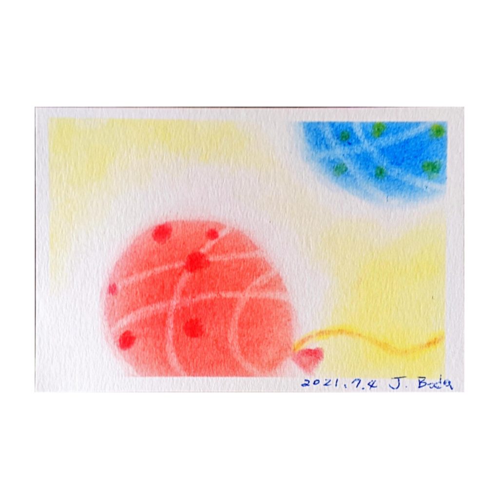 夏の思い出、夏らしい模様、夏の気分、捉え方はそれぞれの「夏模様」。水風船が水玉になったり地球やうさぎの住む月になったり♡イメージを派生させていくもまた楽し。