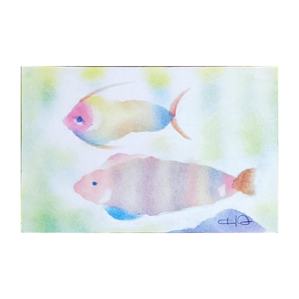 こころのリハビリ 「メッセージカード」「熱帯魚」 半年振りに「一丁目の食堂」さんで開催させていただきました。今日は心と体のリハビリ。ゆったりまったりと忘れかけていた感覚を少しずつ取り戻すように。マスク越しにみえる微笑みがとても胸にしみました。