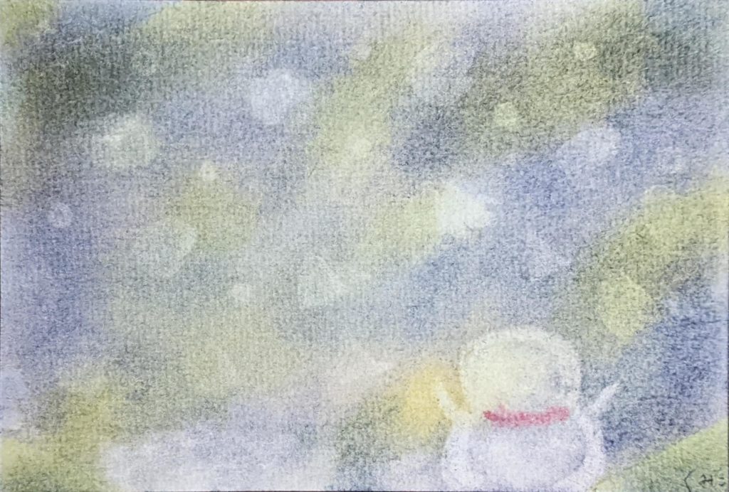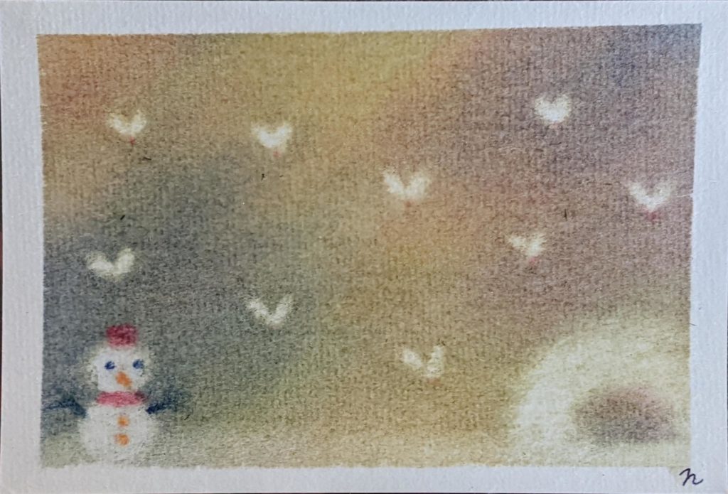 新たな2名の方の参加や、お久しぶりの方もいらしたりでとても賑やかでしたね♡今日のお題は雪だるま。季節を先取りし過ぎた気もしますが、空想的な世界が描かれていてどの作品も色味が素敵ですね♪