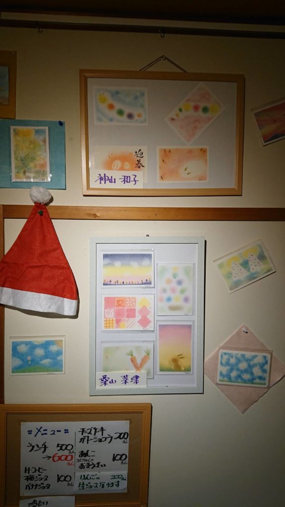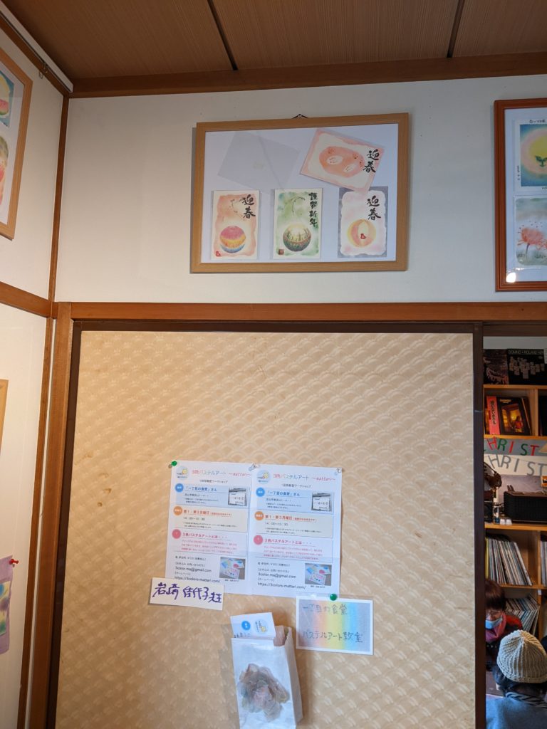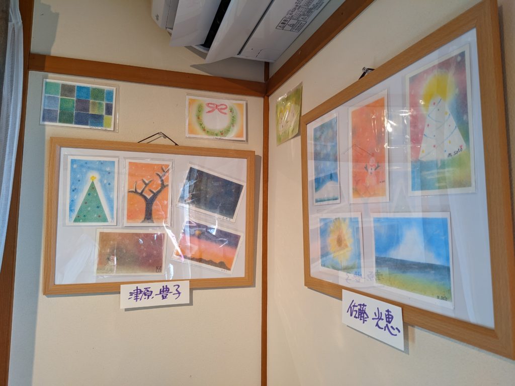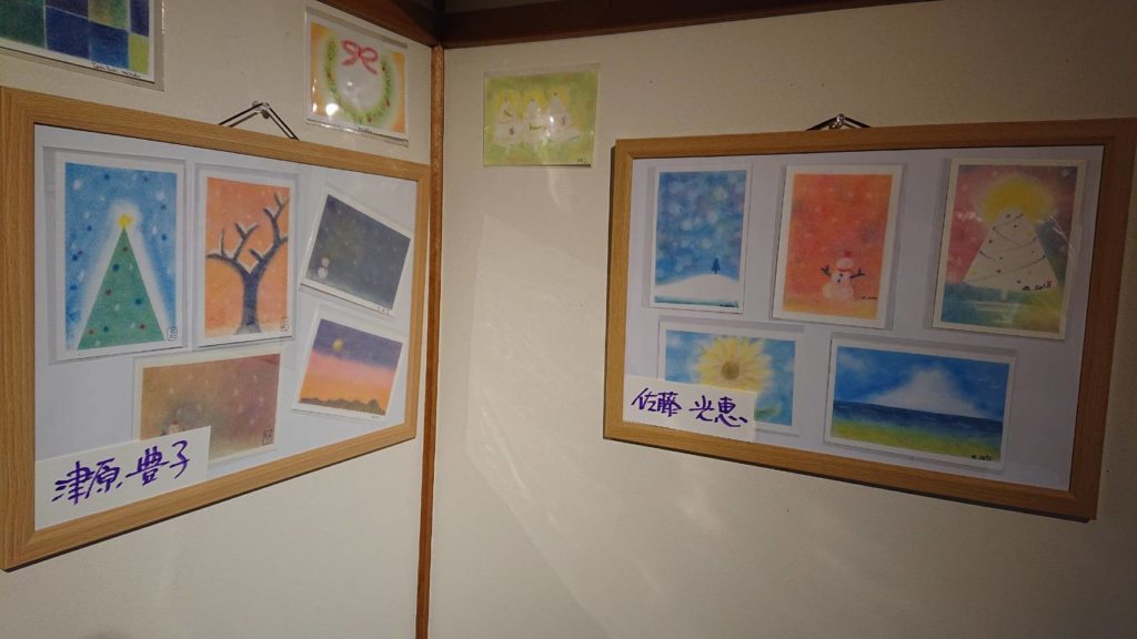 毎月2回、3色パステルアートのワークショップで場所をお借りしている「一丁目の食堂」さん。今回、ギャラリーもお借りして参加者さんの作品を展示。12月7日(水)~2023年1月12日(木)まで展示させてもらっています☆ランチを楽しみながらご覧ください♡