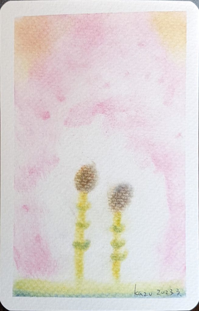 来週からマスク着用ルールが緩和され、少しずつ穏やかな春に戻りつつありますね。今回のお題は「つくし」。凛としていたり、春風に吹かれていたり、頼りなかったり・・・。人生と同じように一枚一枚に色んな物語がありそうですね。