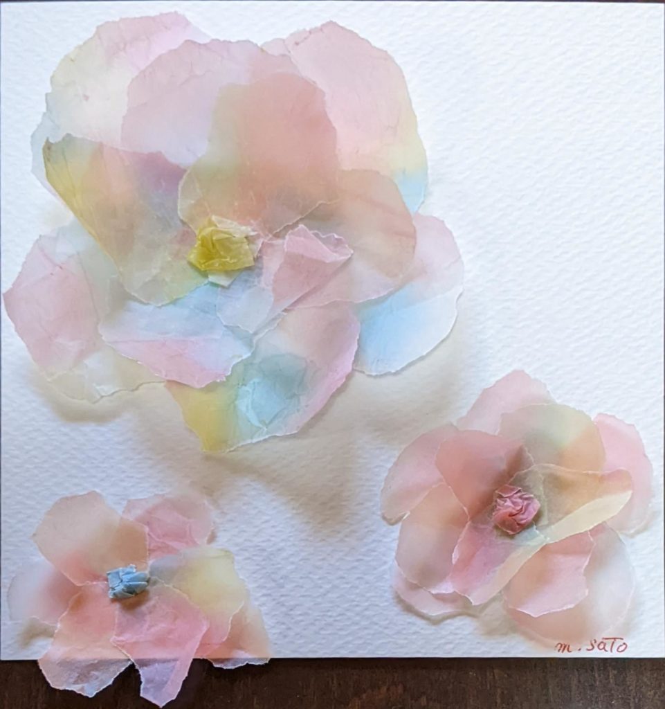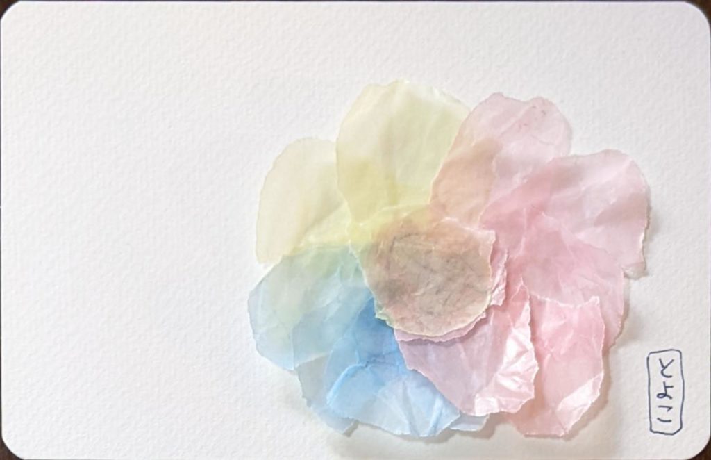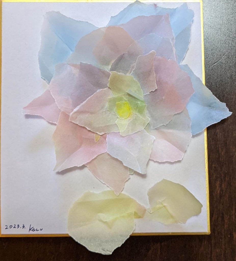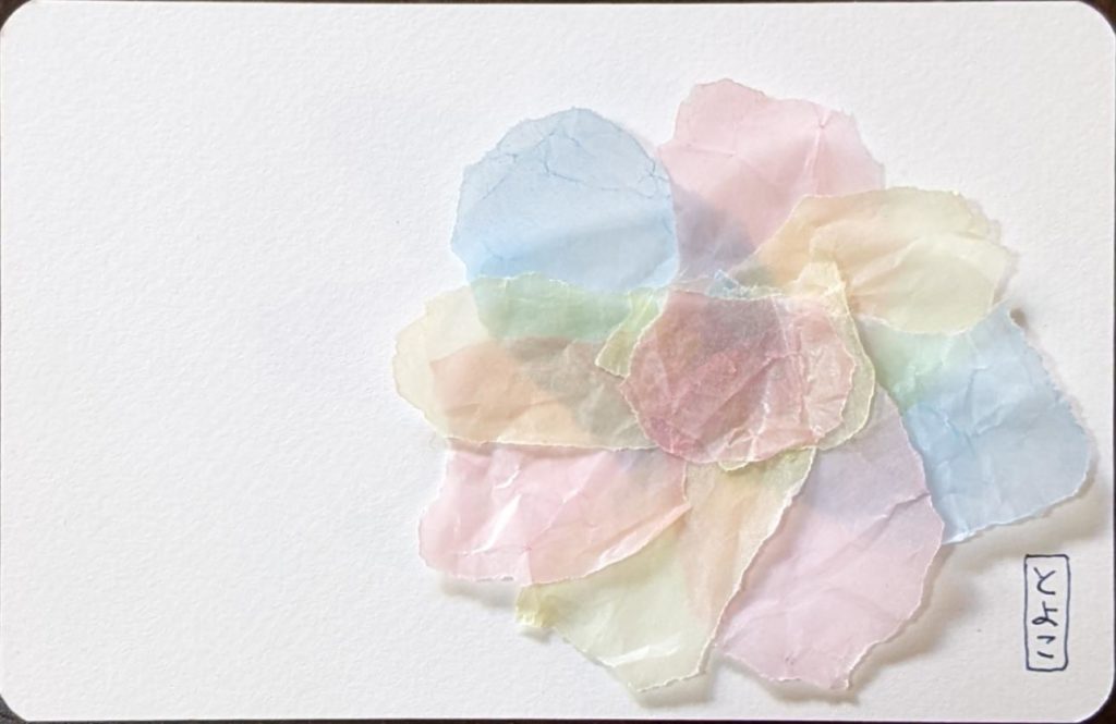 緩和 春も近づき、マスク着用の緩和も少しずつ進み、心も身体も和らいできましたね。 本日のお題は「花畑」と「ちぎり絵で作るお花」。本日でこちらのワークショップを卒業生される方が2名いらっしゃり、そのお祝いの意味も込めて「ちぎり絵のお花」を追加しました。