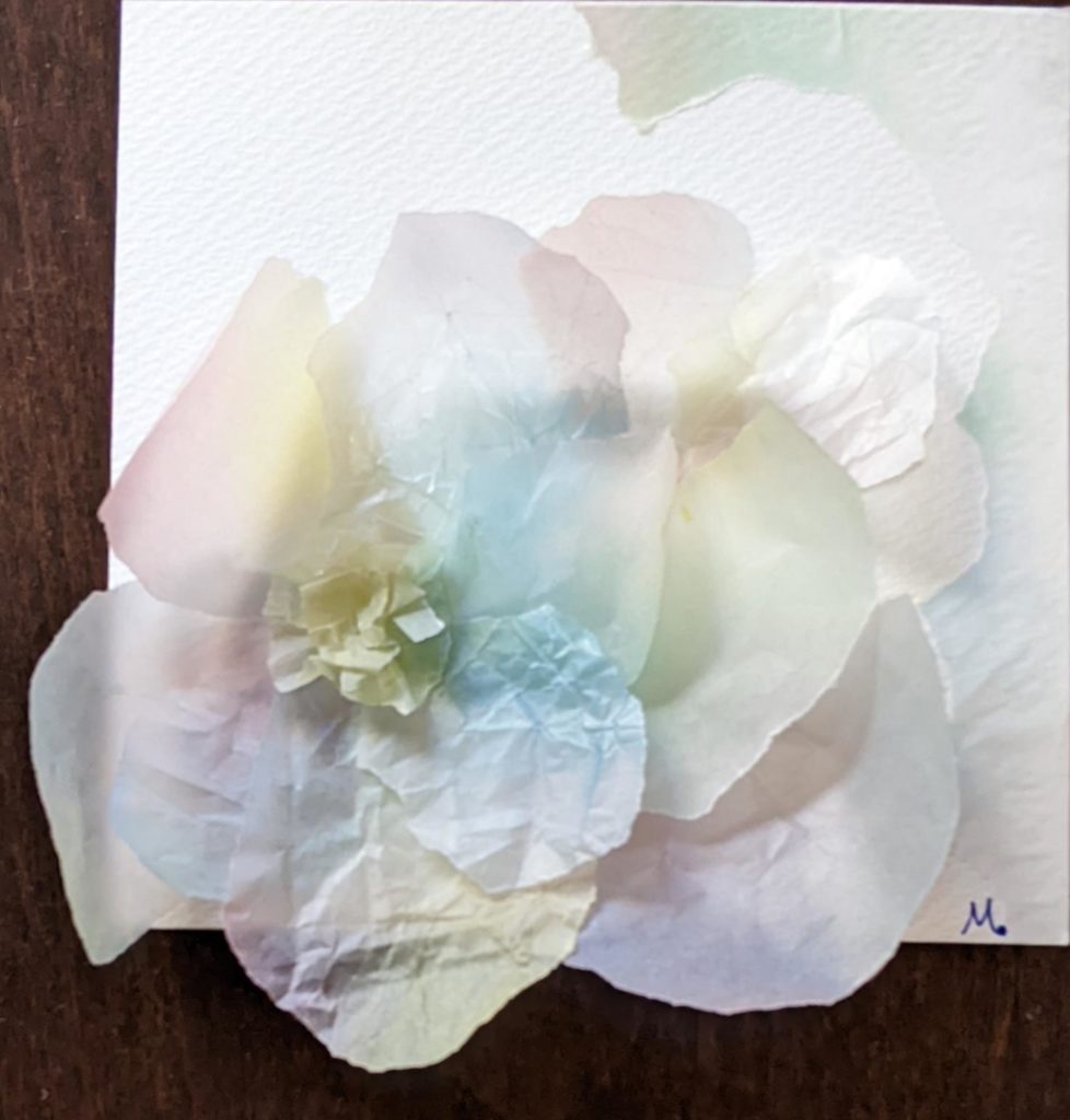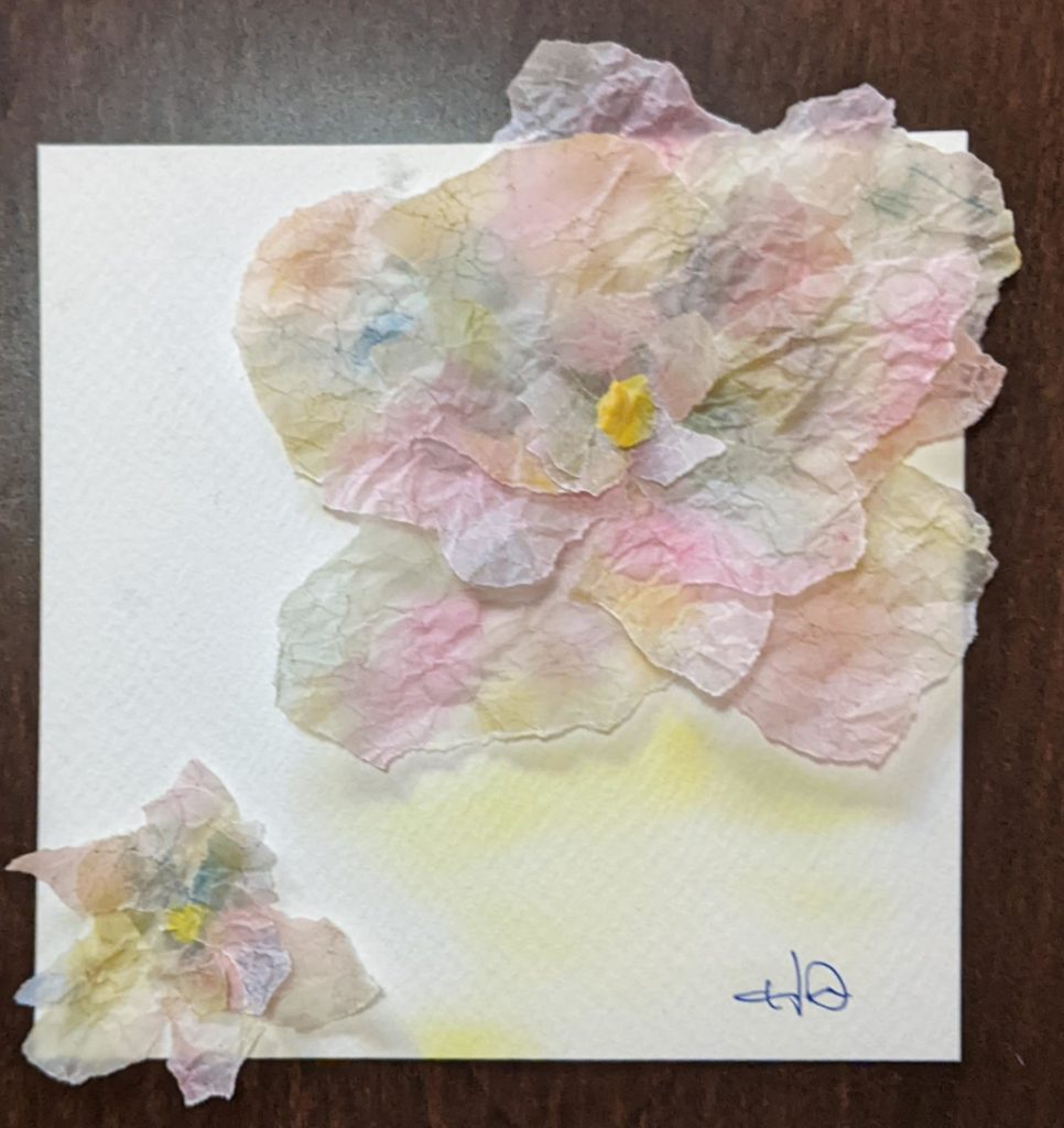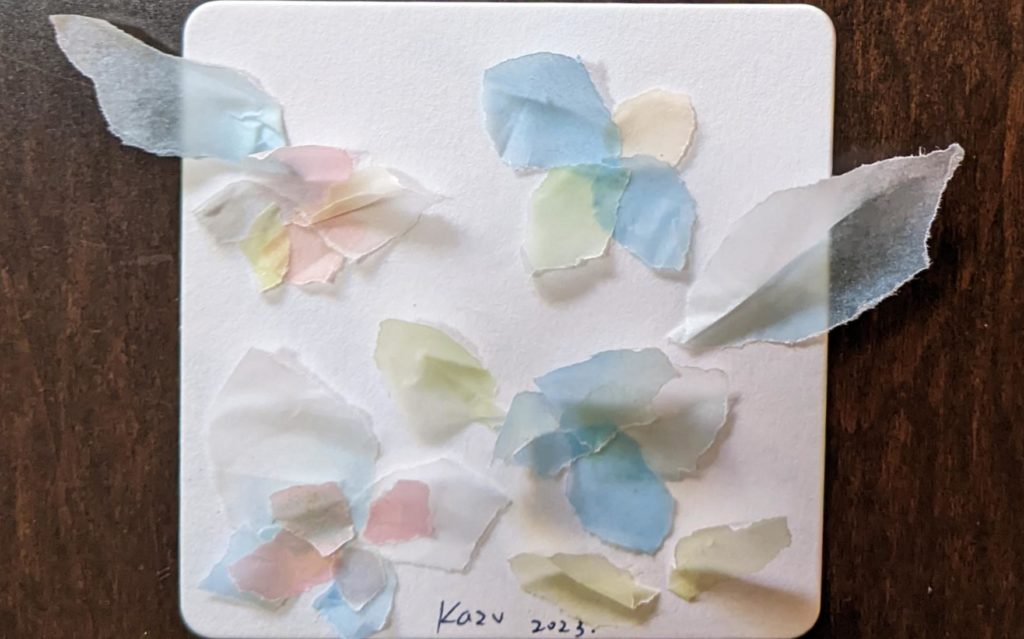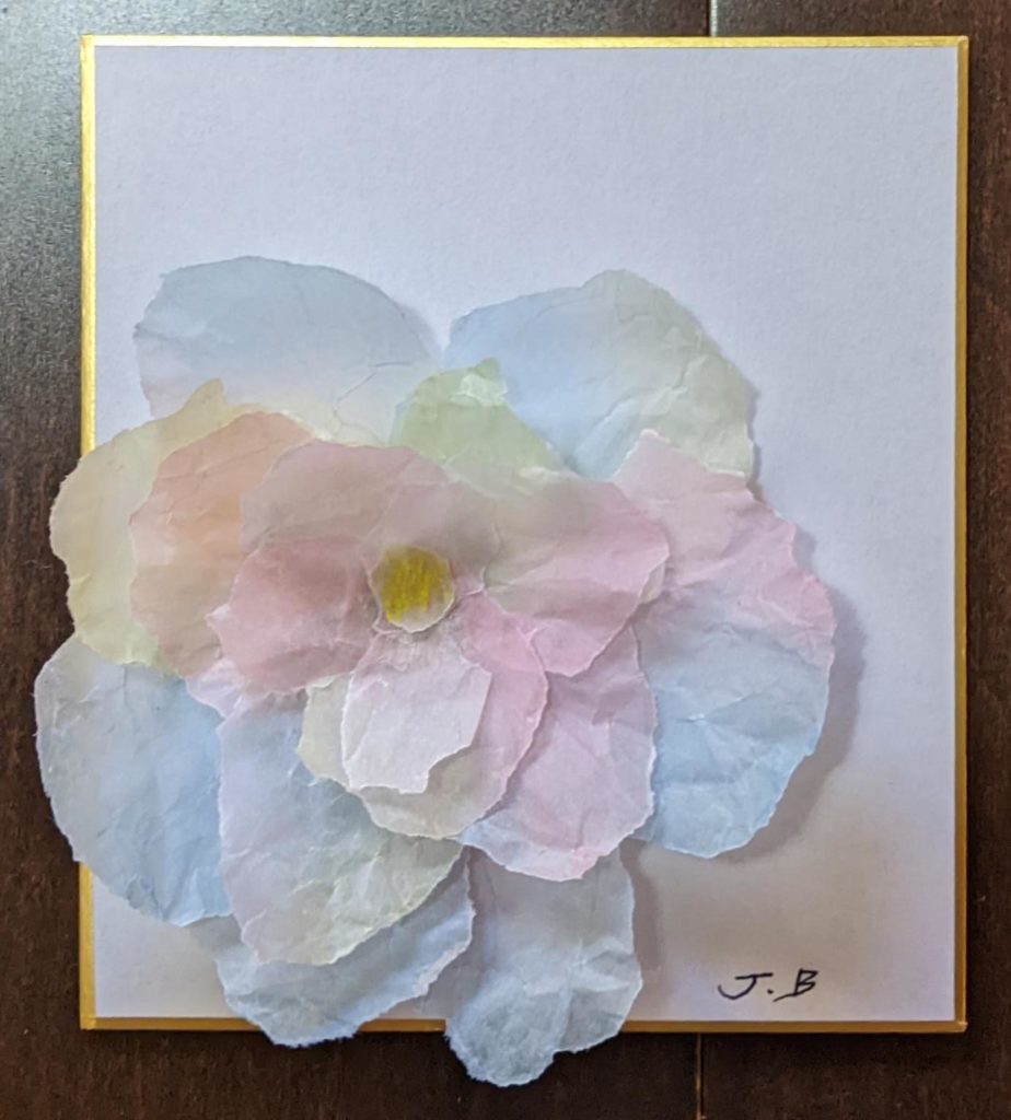 緩和 春も近づき、マスク着用の緩和も少しずつ進み、心も身体も和らいできましたね。 本日のお題は「花畑」と「ちぎり絵で作るお花」。本日でこちらのワークショップを卒業生される方が2名いらっしゃり、そのお祝いの意味も込めて「ちぎり絵のお花」を追加しました。