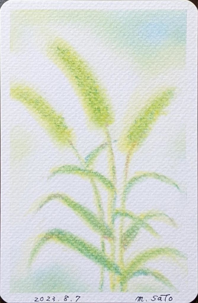 エノコログサ 本日のお題「猫じゃらし」。正式名称「エノコログサ」。和名「狗尾草(イヌの尾の草)」。英語では「green foxtail(緑色のキツネの尾の草)」。幼少期によく「いもむし」遊びをしたものです。生き物との関わりが多い不思議な草ですね。