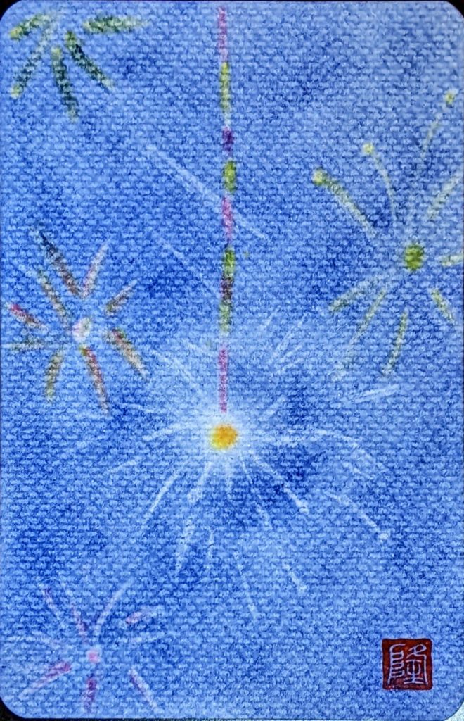夏の終わり 本日のお題は「線香花火」。夏の終わりを感じさせるのは何故なのでしょう。 火花の散り加減がそれぞれ違っていて素敵ですよね♡休憩中に2枚目をイメージして、皆さんアレンジを楽しまれていました♪夏の終わりを連想させる音や景色や感覚を感じてみてください。