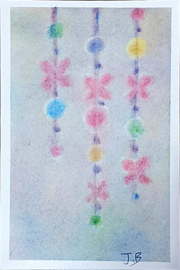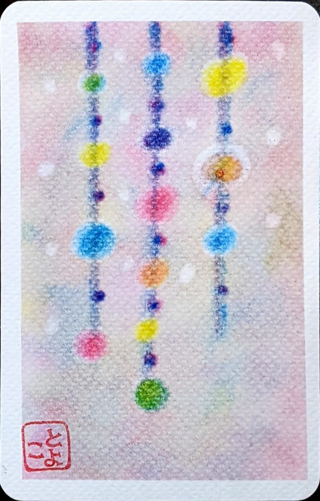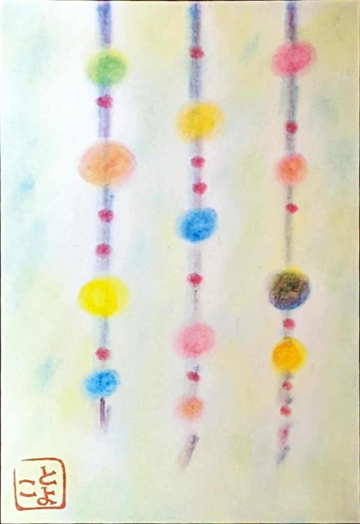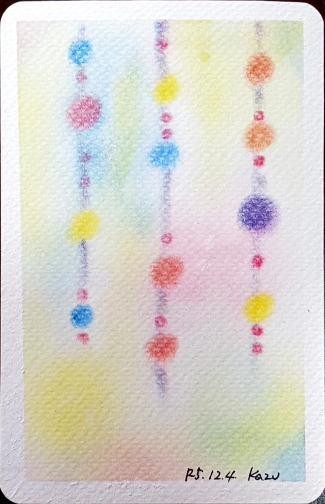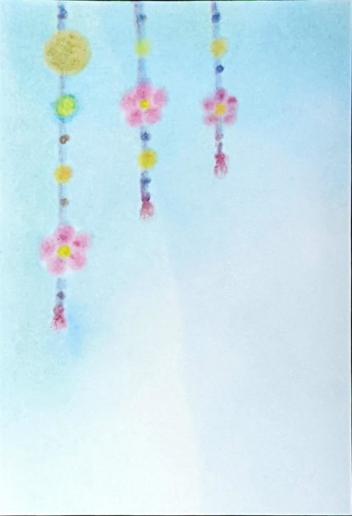 本日のお題は「つるし飾り」。思い思いのお飾りが描けたようです。背景もそれぞれ拘りがあるようで、鑑賞時間はとても賑やかになりましたね。毎回、描いた葉書をお友達に送られる方、ラミネート加工される方、お部屋に飾られる方、皆さん色々な形で3色パステルアートを楽しんでいただけているようでとても嬉しいです♡来年も新たな出会いがあるといいなぁと思いつつ、今年はこれにて。