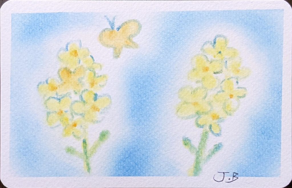 広大な自然や菜の花の香りを思い出しながら、皆さん楽しそうに描かれていました♡春に近づくワクワク感。花ことばは「小さな幸せ」。ほんの少しの幸せをかみしめながら毎日を大切に過ごしたいものですね。