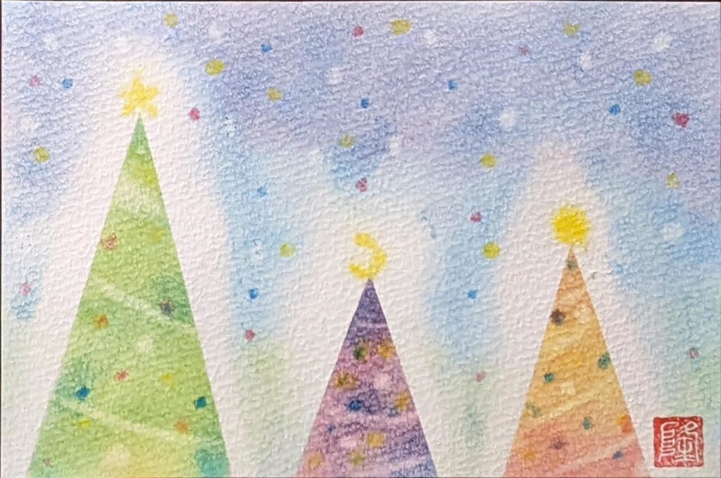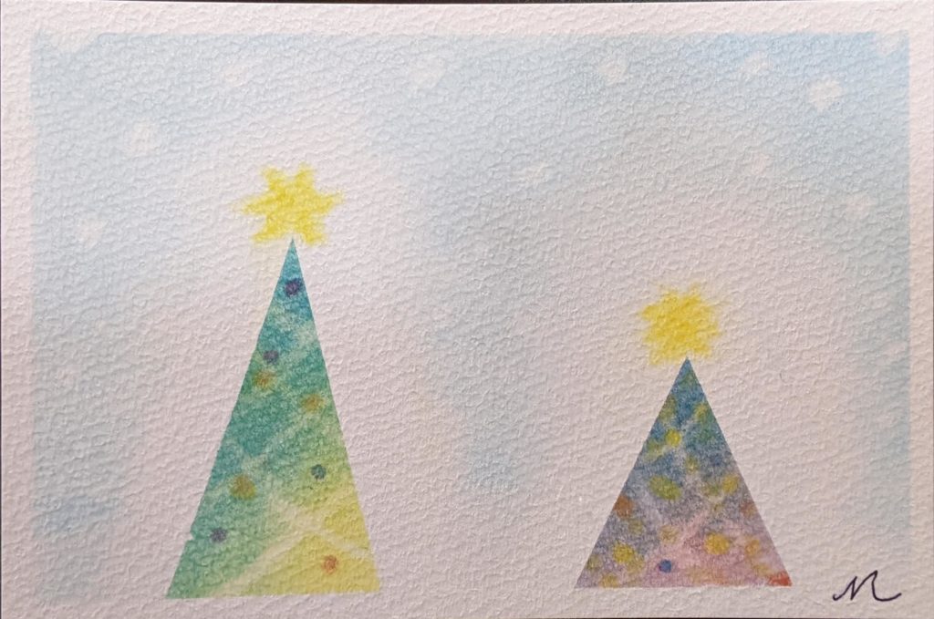 今回のお題は「マスキングテープを使ったクリスマスツリー」。みなさん、マスキングテープと格闘しながら楽しく描いていました♡華やかなツリーがあれば、神聖なツリーもある。煌びやかな中にも厳かな雰囲気もある不思議なツリー達。それぞれに素敵なクリスマスツリーになりました☆