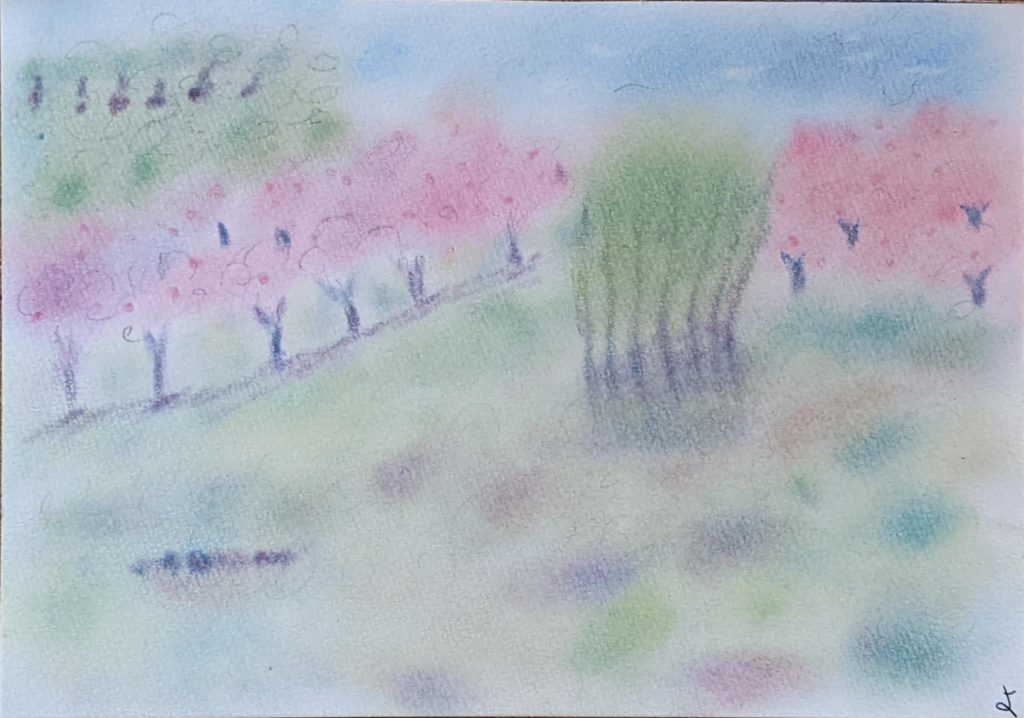 本日は春の特別ワークショップとして、自由な作品作りをして楽しんでいただきました。紙のサイズもB4・B5・ハガキ・栞と様々。絵もそれぞれ自由。ペンで描いてきた絵に3色で色付けをしたり、トレーシングペーパーにパステルを塗ってちぎり絵風にしたり、「3色パステル」を用いて楽しく描いていただきました。みなさん絵タッチが個性的で、みてるだけでも楽しい作品になりました。