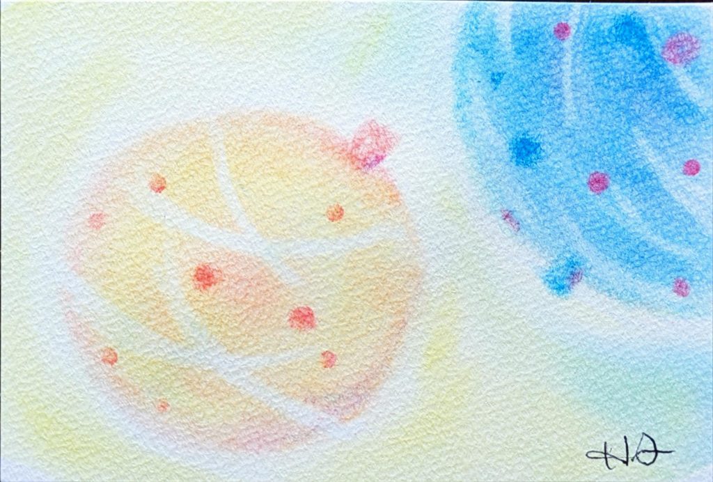 夏祭りの縁日 夏祭りの縁日って何だかワクワクしませんか?水に浮いているカラフルな水風船がより一層、楽し気な雰囲気にさせてくれる。本日のお題は「水風船」。胸躍らせながら描いていただけたかしら(笑)どれも手に取りたくなるような素敵な水風船ですね♪