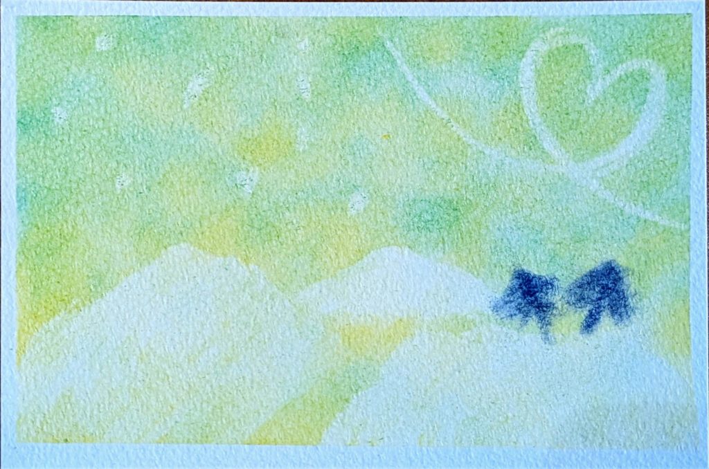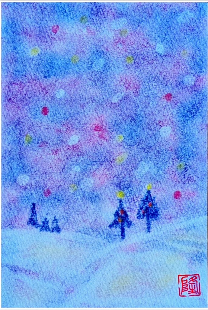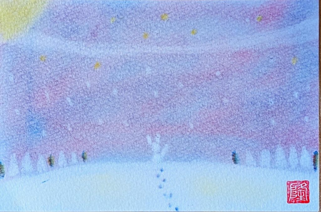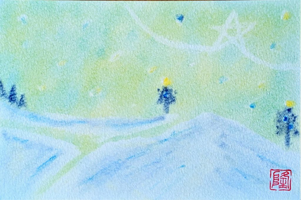 今回のお題は「雪の丘」。3人でおしゃべりしっぱなしの楽しい会となりました。それぞれイメージした雪の幻想的な風景は、寒さではなく温もりを感じられるものもあり素敵ですね♡