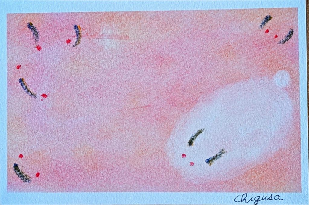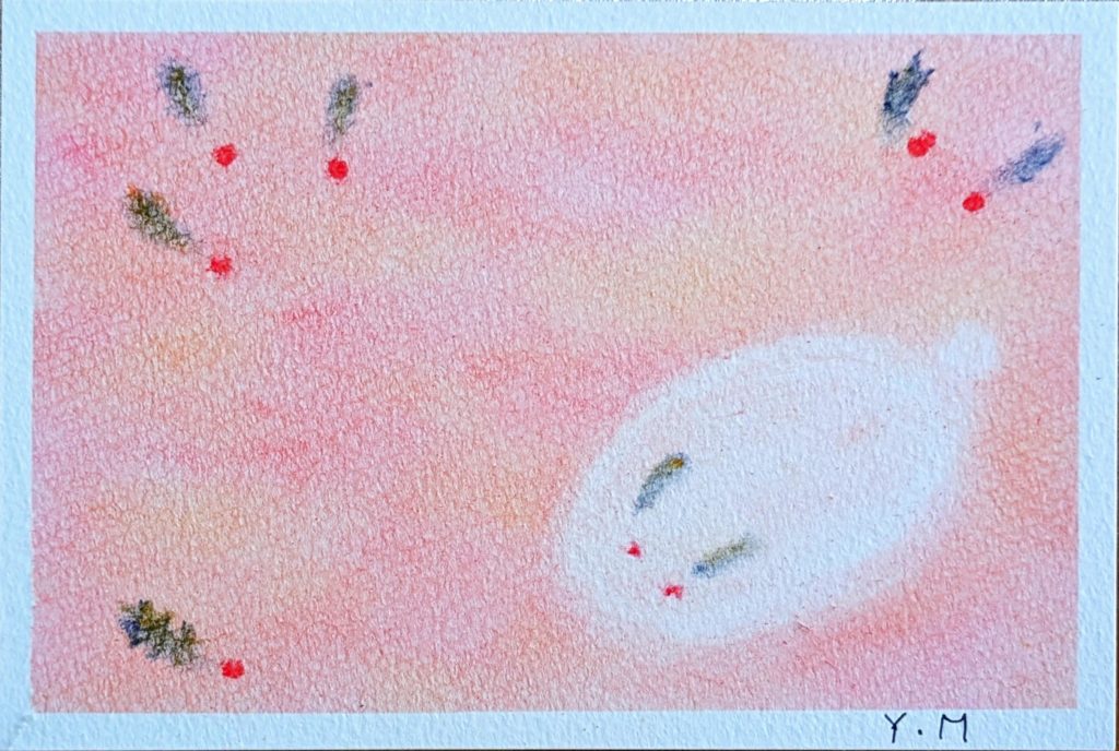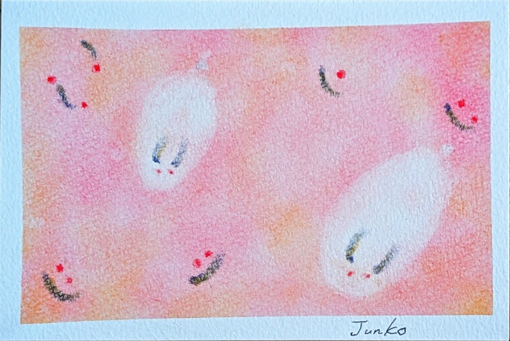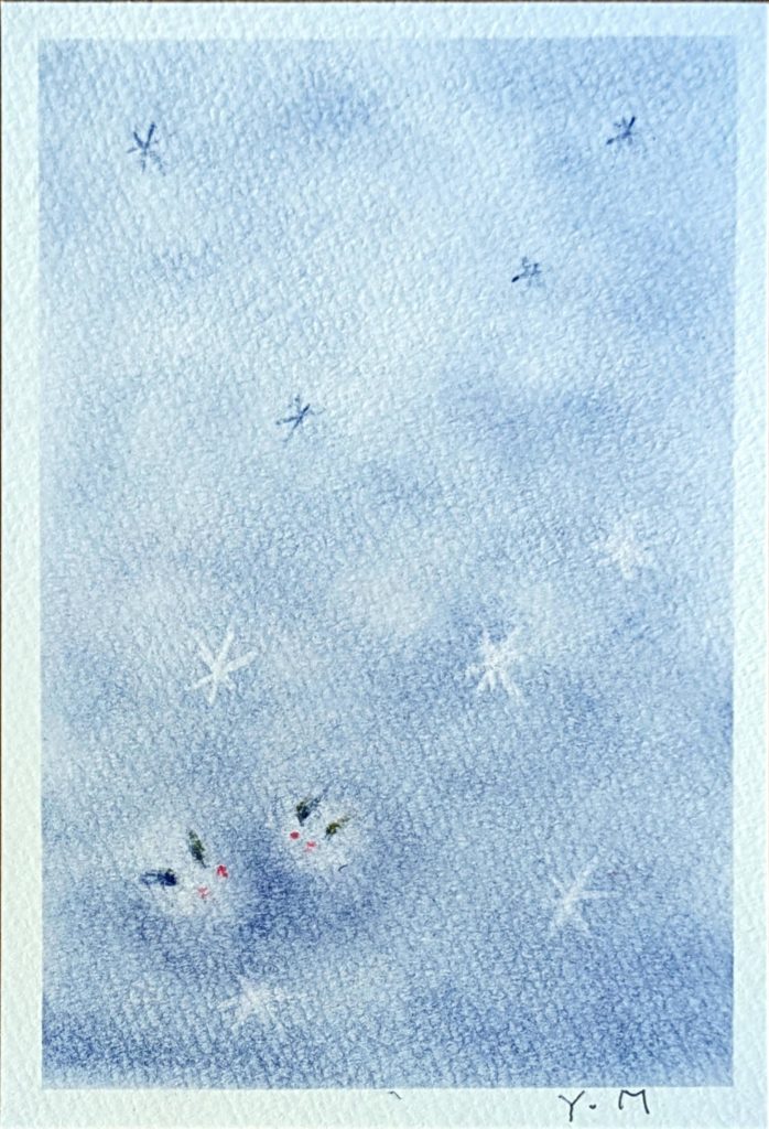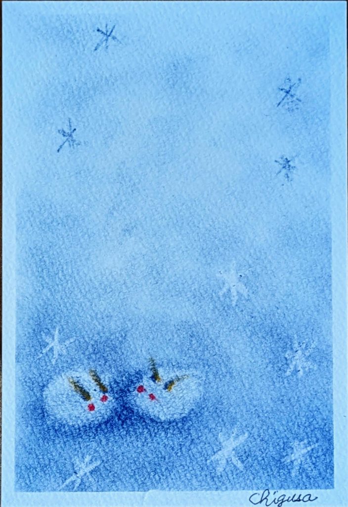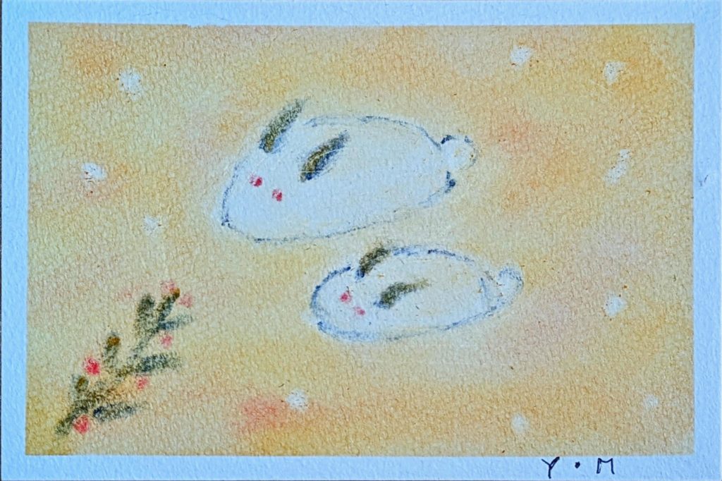 今日のお題は「雪うさぎ」。来年の干支だっけ?との疑問をはねのけ(笑)黙々と3枚も描いていただきました。アレンジもとても素敵で、お互いの作品をとても楽しそうに褒めあっていましたね。長年のベテラン勢もさることながら、初参加の方や2回目の方もいらっしゃって本当に嬉しい限りです。