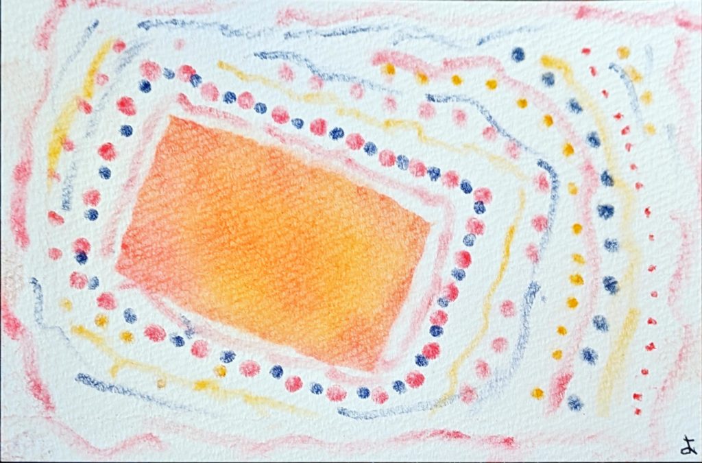本日のお題は「形からはじまる抽象画」。2枚目以降はアレンジOK。皆さん、想像力が豊かで驚きました!世界に1枚しかない抽象画作品です。